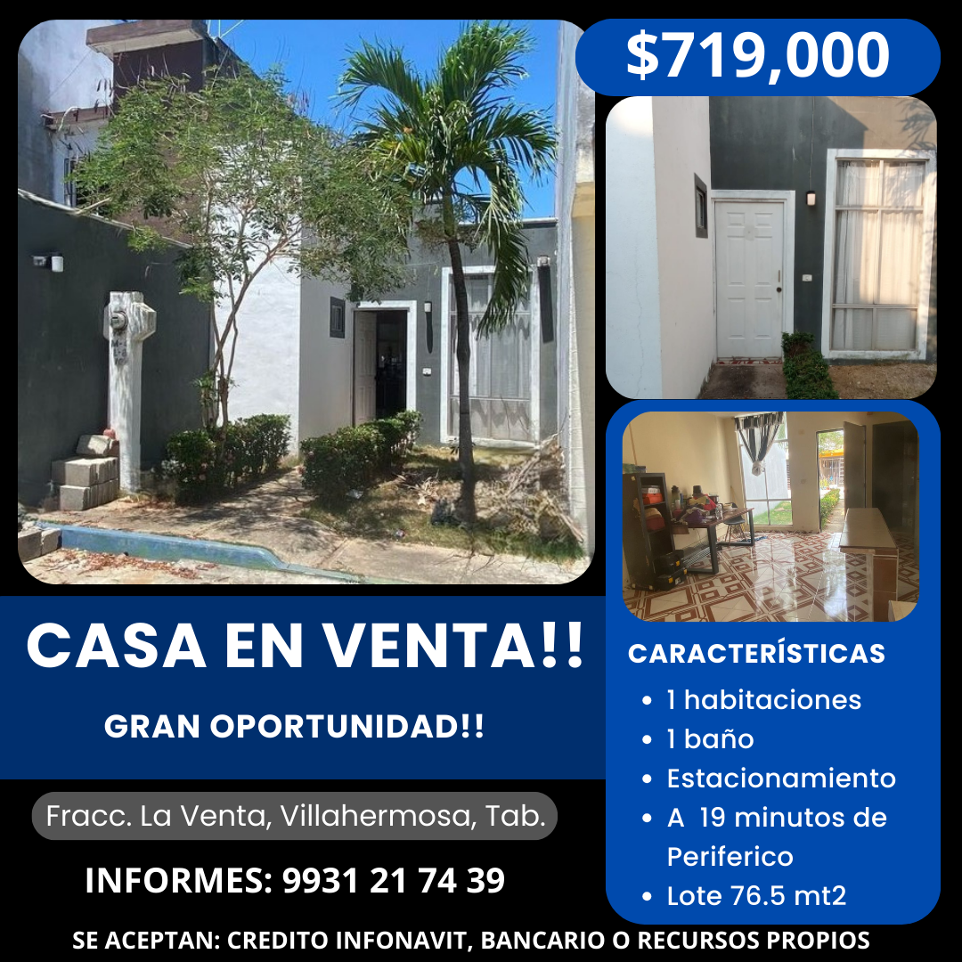 🚨 Casa en venta!! 🚨 Gran oportunidad!!!, a 19 minutos de Soriana Guayabal! Fracc. La Venta, Vhsa. 🏠💲 719,000 🚨