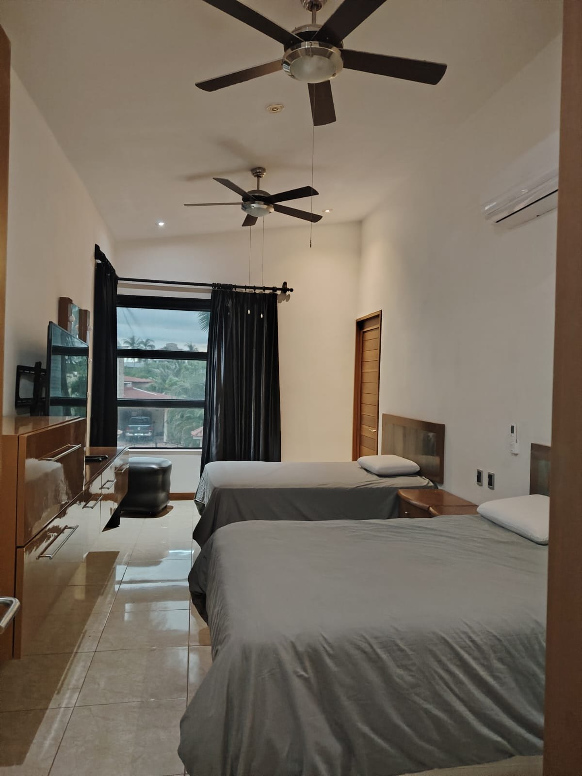 En planta alta se encuentran 3 recámaras todas con baño completo y vestidores, y cada una cuenta con a/a y ventilador y TV. También hay una sala de TV que cuenta con a/a y ventilador. Todas los ambientes de la planta alta están totalmente amueblados.