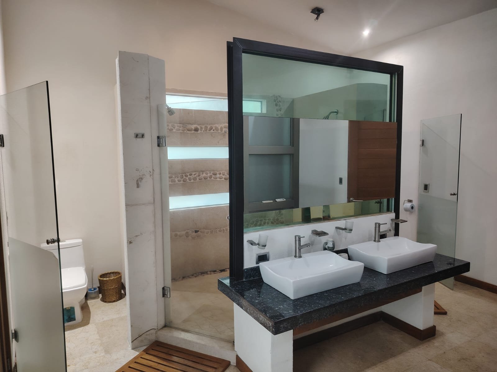 La recamara principal cuenta con dos WC y una ducha de pared con 5 salidas de agua.