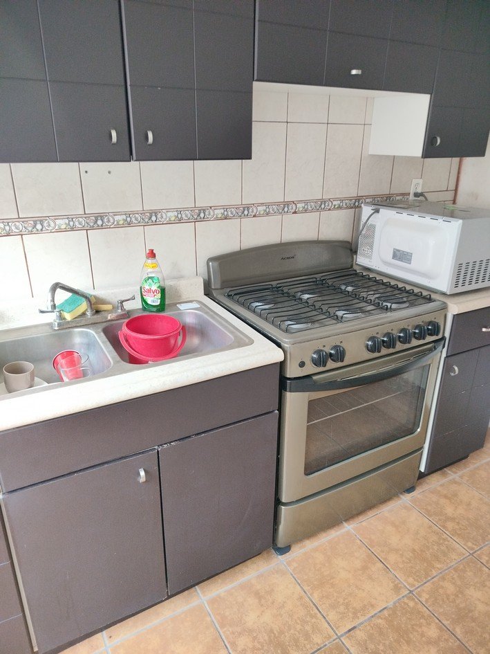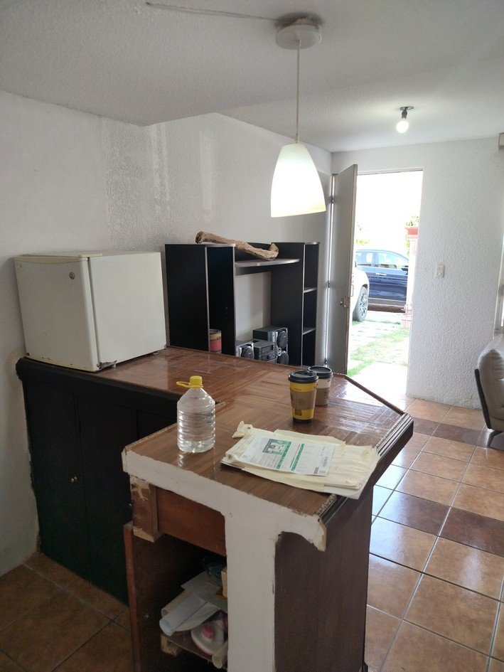 La casa tiene 2 recámaras, sala comedor, cocina con cocina integral, cochera para 2 autos chicos, patio de servicio.